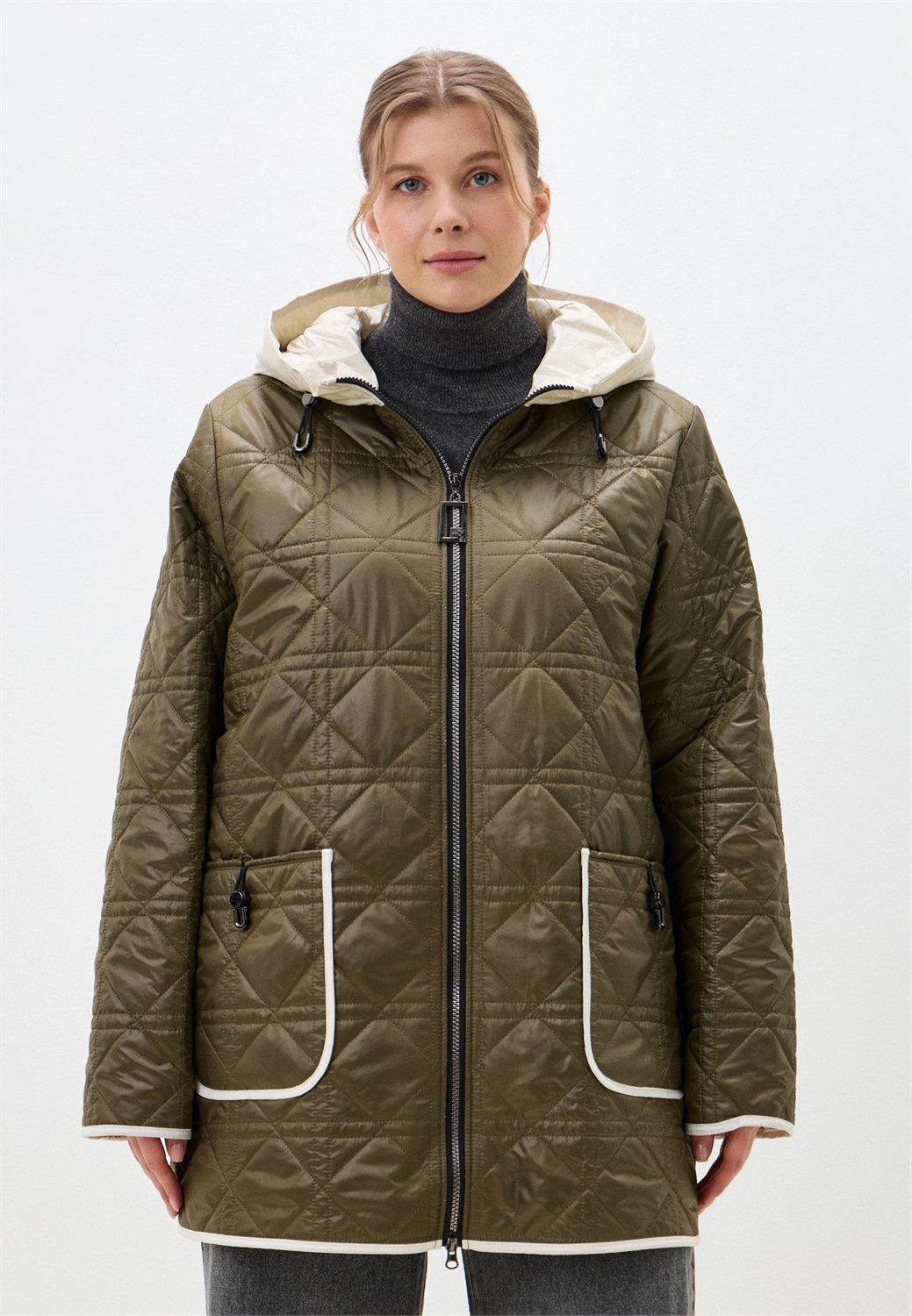 Куртка выполнена из стеганого текстиля. Модель прямого кроя. Детали: застежка на двунаправленную молнию, воротник-стойка, фиксированный регулируемый капюшон, 2 накладных кармана, внутри мягкая подкладка.