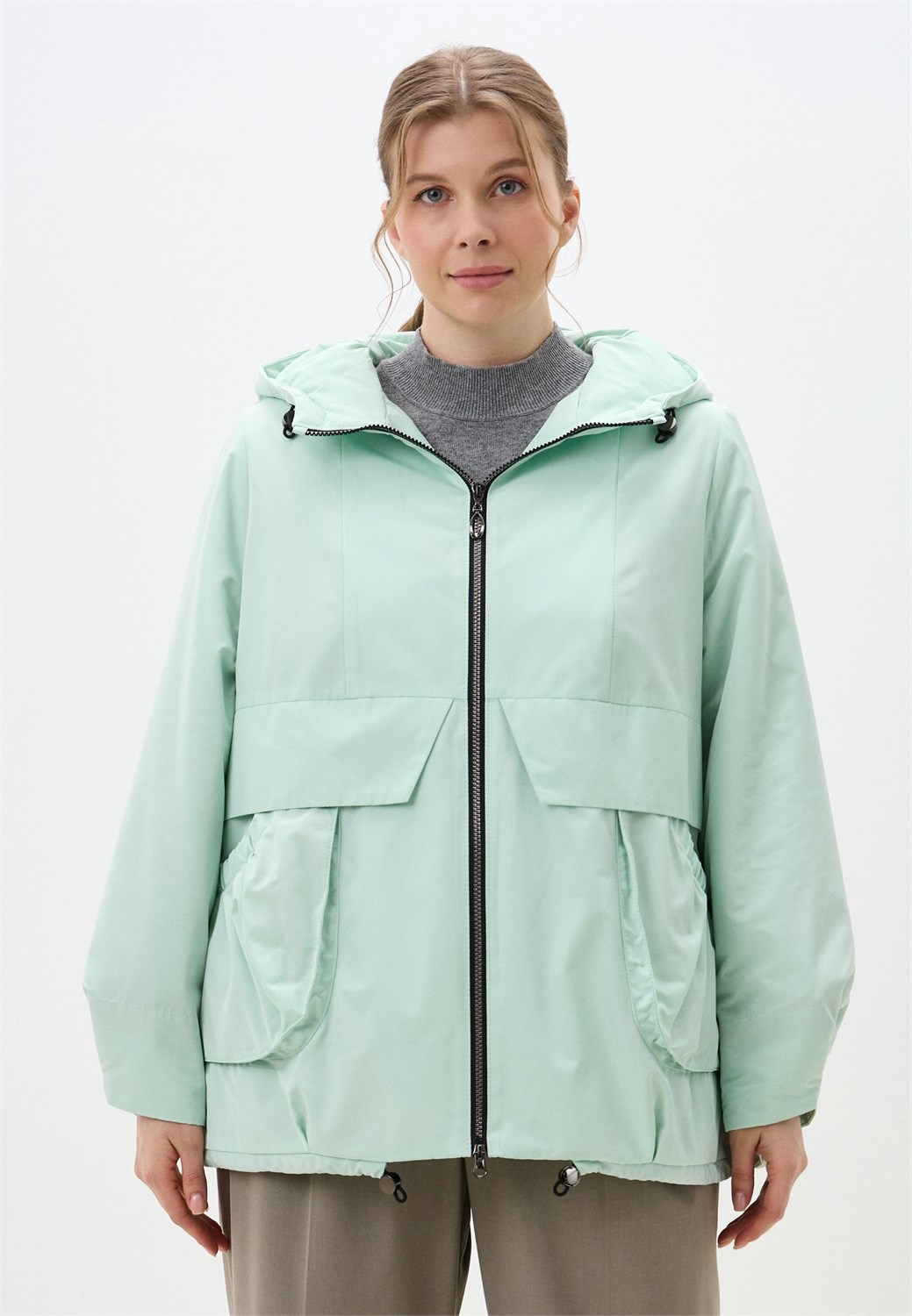 Спортивная куртка на молнии. С капюшоном(на кулиске), несъемный. На рукавах манжет-резинка. 2 накладных кармана. По низу также имеется кулиска. Длина 73 см.