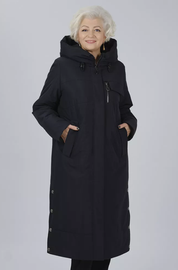 Черное зимнее пальто УП 969 длиной 114 см идеально прикрывает бедра и ноги, сохраняя тепло даже в сильный мороз. Двухзамковая молния закрывается дополнительной планкой на потайных кнопках — ветер не проникнет внутрь. Утеплённые изнутри карманы на магнитах порадуют теплом рук в холодные дни. А вшитые трикотажные манжеты в рукавах не позволят ветру пробраться к коже.