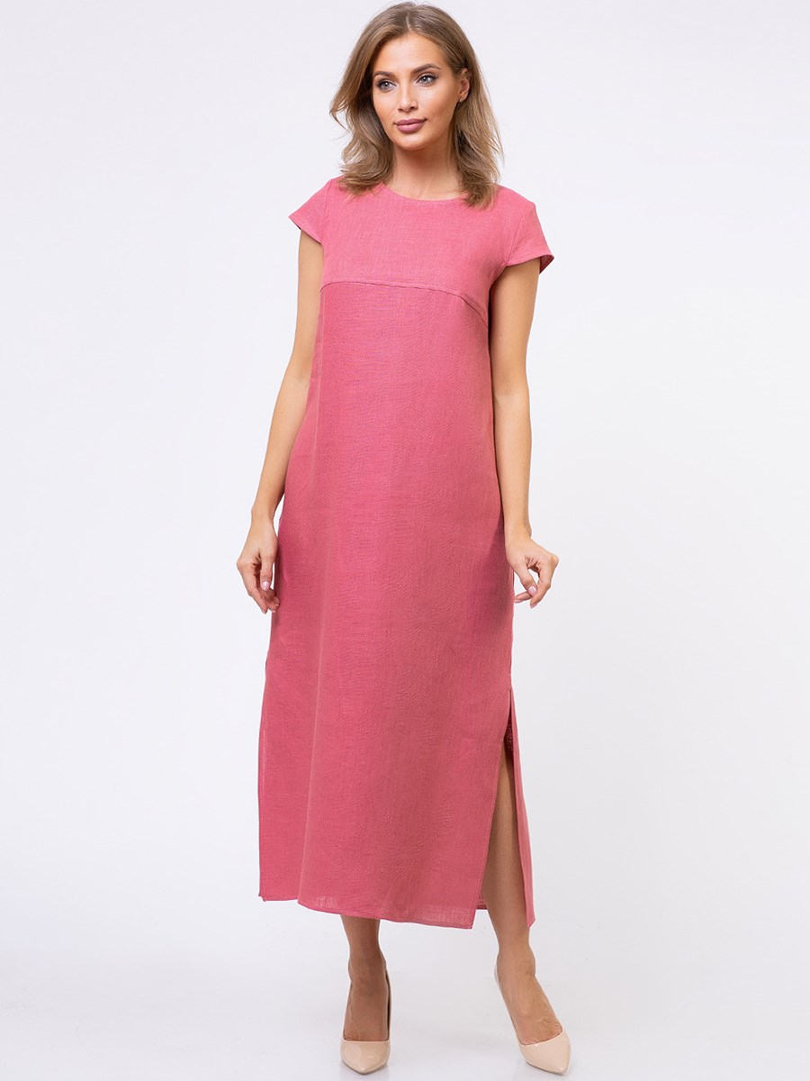 Летнее платье длины макси из натурального льна – вещь, которая никогда не будет лишней в гардеробе и замечательно подойдет как для повседневных выходов, так и для прогулок или же загородных поездок. Модель дополняют: кокетки на спинке и спереди, короткие рукава-крылышки, округлый вырез горловины. На спинке кулиска с резинкой по линии талии. Боковые разрезы делают шаг свободным. Летние платья из льна по праву можно считать самой комфортной одеждой для жаркого лета. Роскошный подарок от самой природы!