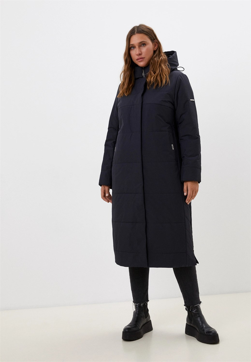 Утепленная куртка выполнена из стеганого текстиля. Модель прямого кроя. Детали: застежка на молнии, ветрозащитная планка на кнопках, втачной капюшон регулируется эластичной кулиской, 2 боковых кармана на кнопках, внутри гладкая текстильная подкладка, средний слой искусственного утеплителя.